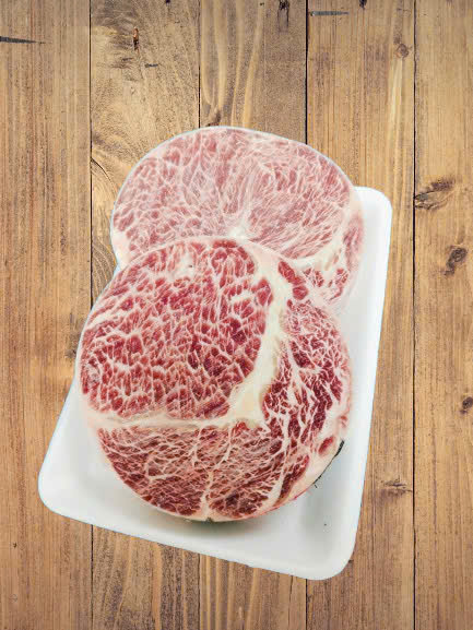 ✔ Màu sắc: Thịt đỏ tươi, vân mỡ cẩm thạch đẹp tự nhiên.,có hình tròn.
